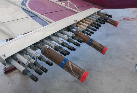 Two different types of seeding agents are used, depending on the temperature of the cloud volume to be treated. The agents used to seed a cloud (cloud seeding agents) drive the technology used for cloud seeding. The terms “cold rain” (developing through a process that involves ice particles) and “warm rain” (developing through a process that is entirely liquid) are often used to describe the two primary cloud microphysical processes that produce precipitation naturally. The most common agents used in “cold rain” or snowpack augmentation cloud seeding projects are silver iodide and dry ice (frozen carbon dioxide). Other agents like liquefied gases (liquid nitrogen for example) can be used to seed clouds, The means of generating seeding agents in “cold rain” snowpack augmentation projects include pyrotechnic flares (similar to emergency highway flares), a solution of chemicals, dry ice, or compressed gas cylinders. The flares used for cloud seeding usually contain silver iodide or a salt. Flare racks can be installed on aircraft to carry the pyrotechnic flares. The solutions contain silver iodide dissolved in acetone and are dispensed via combustion from devices called silver iodide (ice nuclei or aerosol) generators. These generators can be located on the ground or attached to the wings of an aircraft. Dry Ice is usually acquired in pellet form. The pellets are placed in special insulated containers (called dry ice hoppers) for dispensing the pellets. Dry ice is most frequently dispensed from aircraft. Installations on aircraft are certified by the Federal Aviation Administration (FAA). Similarly, “warm rain” cloud seeding agents can be produced by “hygroscopic” flares. These flares contain some type of salt (e.g., calcium chloride). When the flares are burned they produce minute particles of the salt which attract water vapor, forming cloud droplets in addition to those already present in the cloud. Hygroscopic seeding can also be done using dry common salt (NaCl) that has been processed to optimum sizes in powder form for the promotion of droplet growth in the clouds. This salt is dispersed normally from an aircraft flying immediately below or in the updraft regions of the clouds
